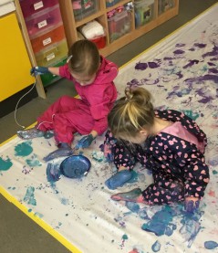 In the Ducklings the toddlers are becoming more independent developing their autonomy quickly. They begin to sit together in a small group for registration, stories, and songs. Their speech which is developing quickly is actively encouraged, they are supported with their emotional regulation, and we work closely with parents towards toilet training.
