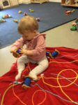 Most of all Babies need to feel safe, secure and cared for. We understand babies have very individual needs with regards to their food, sleep, daily routines and general comfort. Our small room and friendly staff care, creating a family atmosphere. A baby can only develop into a healthy, strong and confident young toddler if all their basic needs are met which is our main aim in baby room. They enjoy outside play, nursery rhymes with actions and props and sensory play.